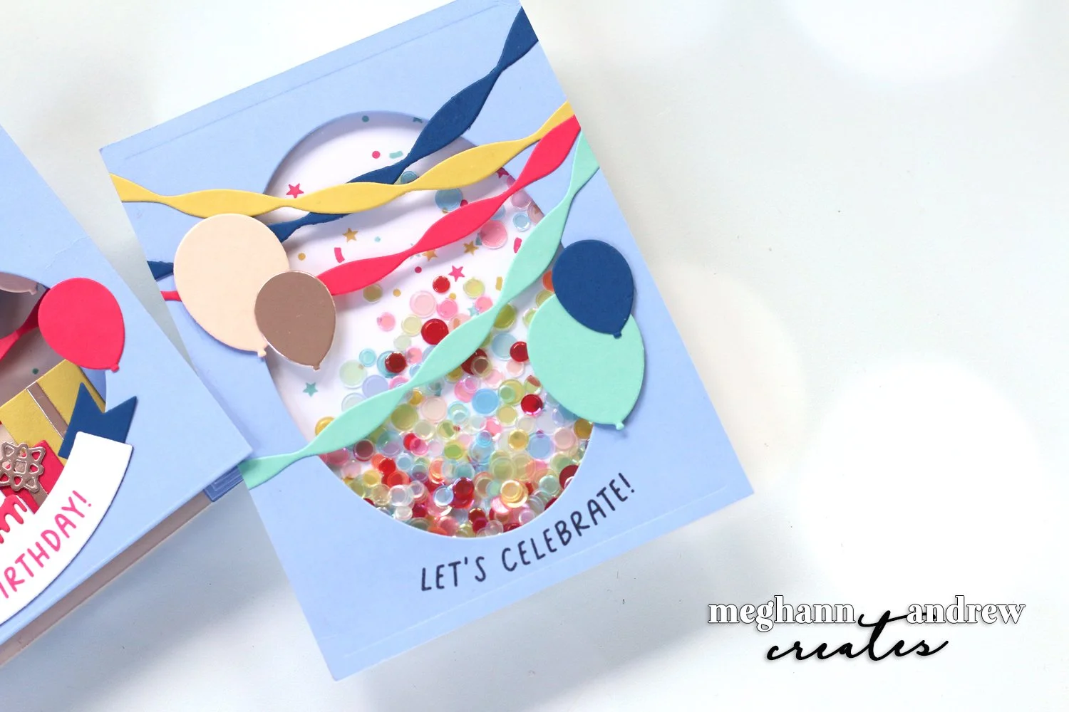 Once the accordion card was complete, I had plenty of die cuts left over, so I decided to use the oval die from the Accordion Card Base Dies to create a shaker window with streamers from the Accordion Birthday Dies criss-crossing in front! I love how easily this card came together, and it shows how well a large die-cutting session can pay off!
