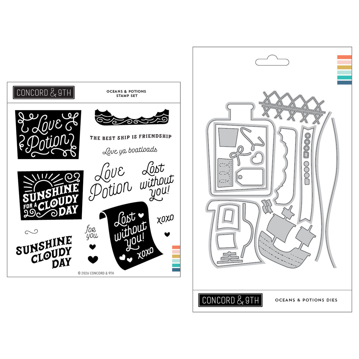 For my focal point, I cut the ship using Oceans and Potions, a sweet bundle that is so versatile and allows you to create bottles stamped with greetings, or a ship in a bottle! I placed my ship on my heart's focal point using foam adhesive. To ground it, I placed my ‘love ya boatloads’ sentiment below.