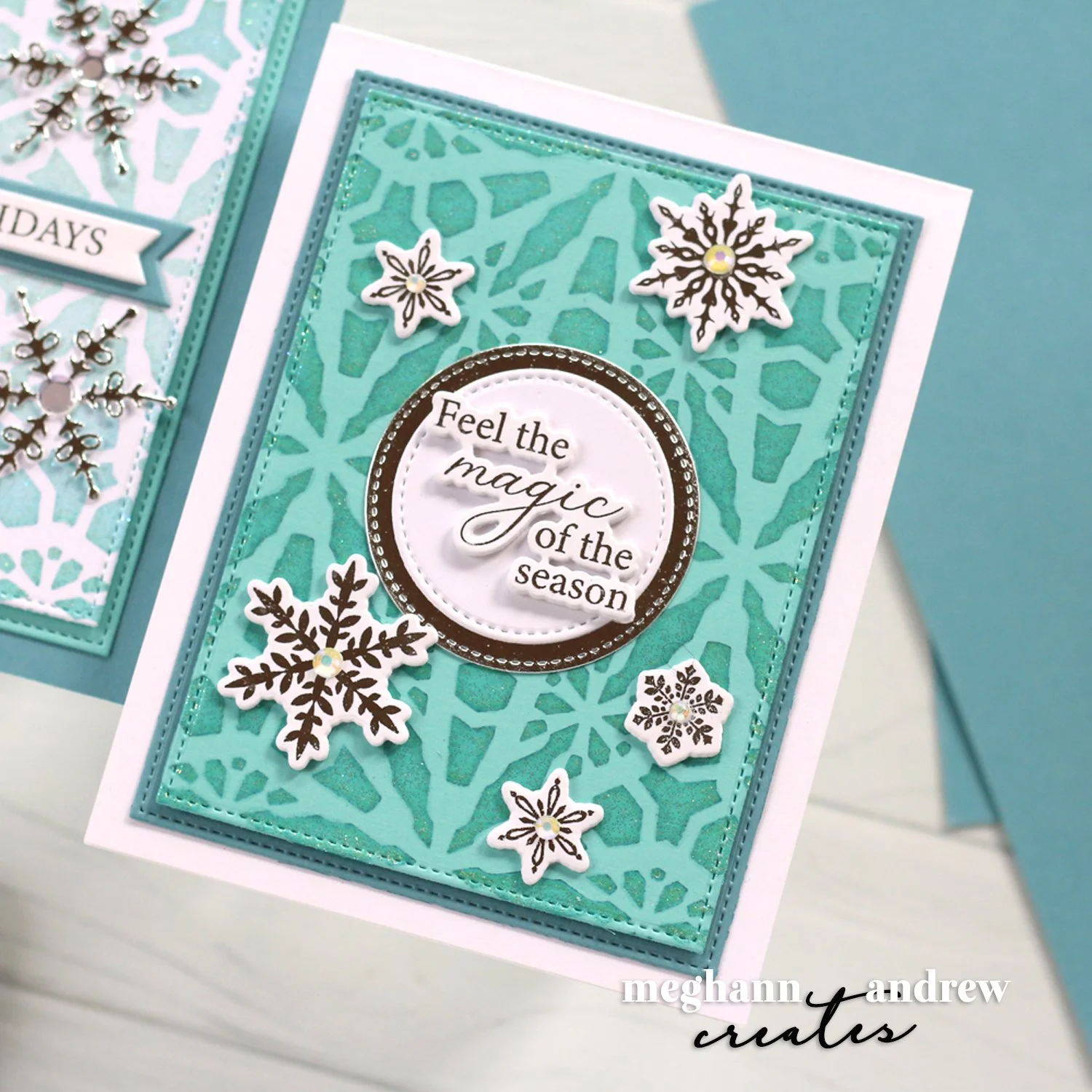 On my second card, I created a tone-on-tone background using Sea Glass cardstock, topped with snowflakes that I created using A Little Something Poly-Glaze and coordinating die set.