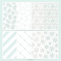 I wanted to create a patterned background, and the Merry Mix Stencil Pack delivered! I created this gorgeous plaid banner using tone-on-tone colors: Evergreen and white pigment ink. It was simple to do this! To finish the card, I cut the ‘joy’ sentiment and a star from the Triple Step Evergreen Bundle twice from Matte Silver Foil Paper, then from black cardstock, offsetting them to create a shadow layer. I then finished with ornaments and a bow cut using the Triple Step Evergreen Bundle, Matte Silver Foil Paper, and Brickyard cardstock for a pop of color.