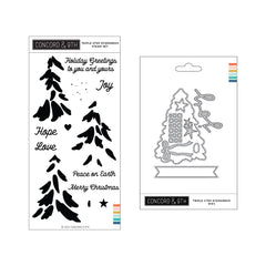 I placed my die-cut tree onto an oval cut using the Accordion Card Base Dies, with a snowy base created with a slope die from the Sleigh Full of Cheer Bundle cut from the chunky white glitter paper found in the Festive Christmas Assorted Color Cardstock Pack. I cut another oval from Black cardstock and offset it to create a shadow layer.