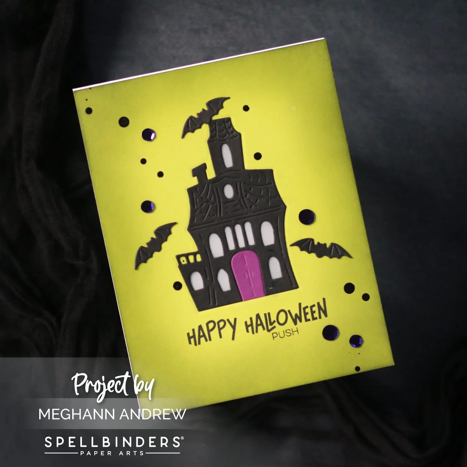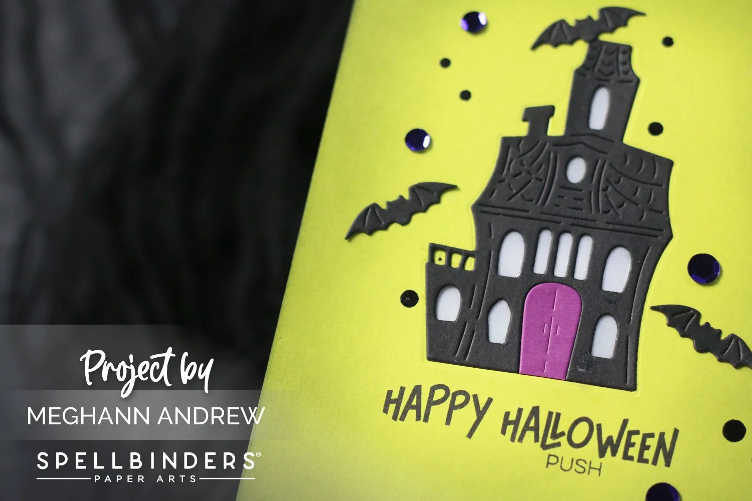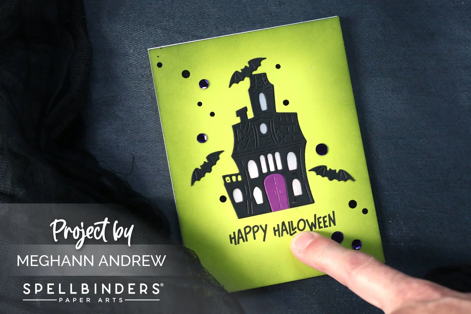I can’t seem to stop using Peridot ColorWheel Cardstock for this series, and I ink-blended the outside edges to give it a spooky house vibe!
