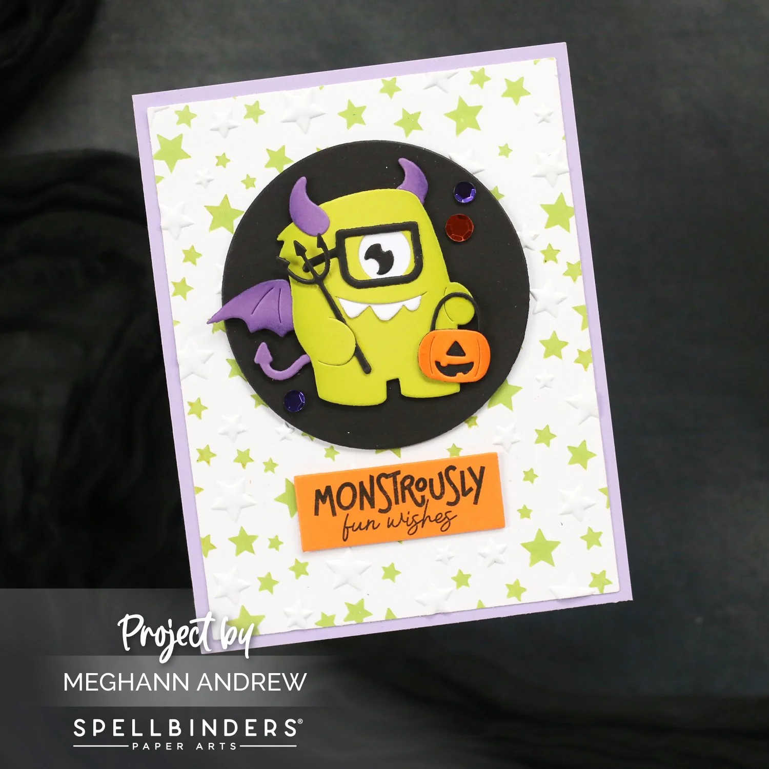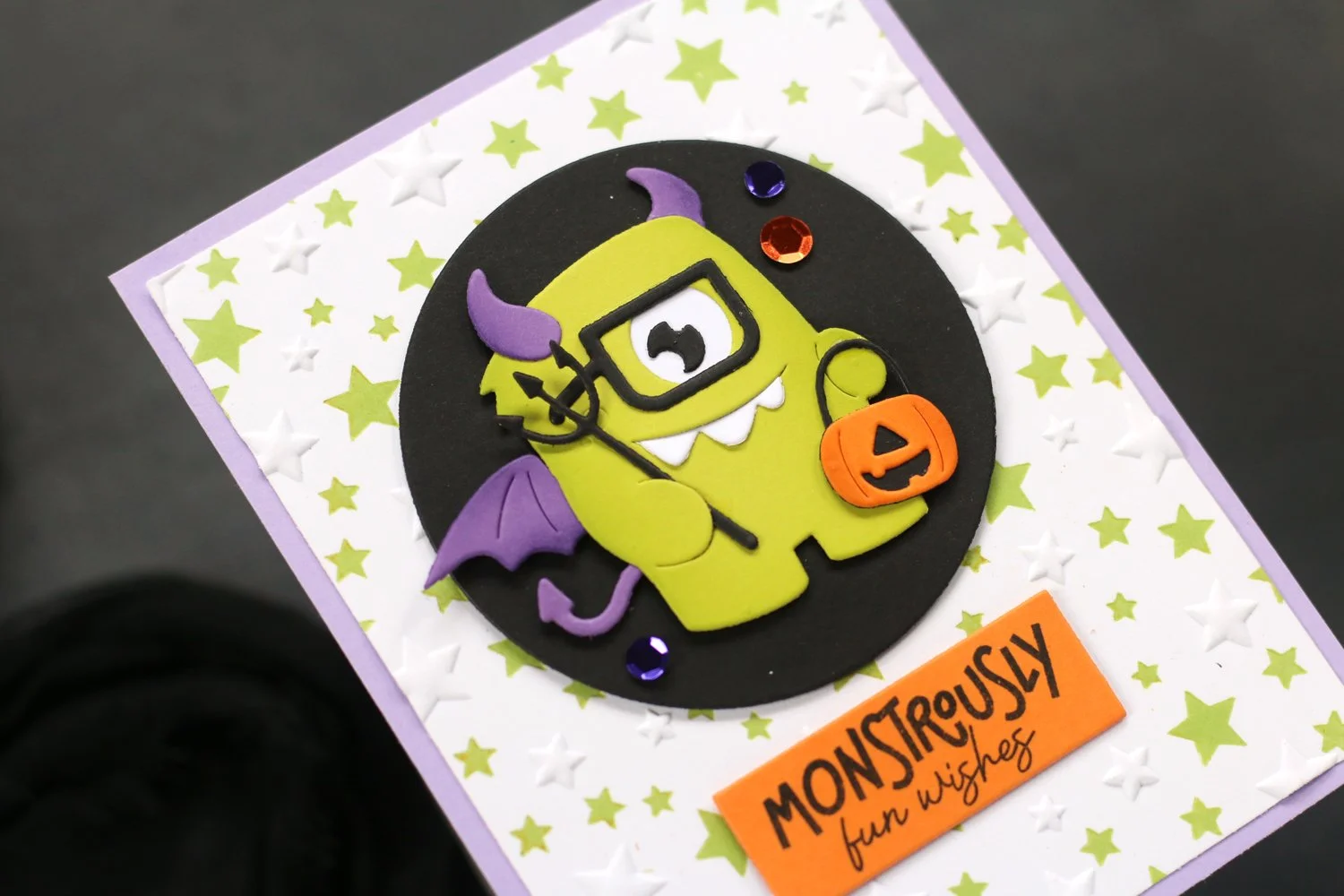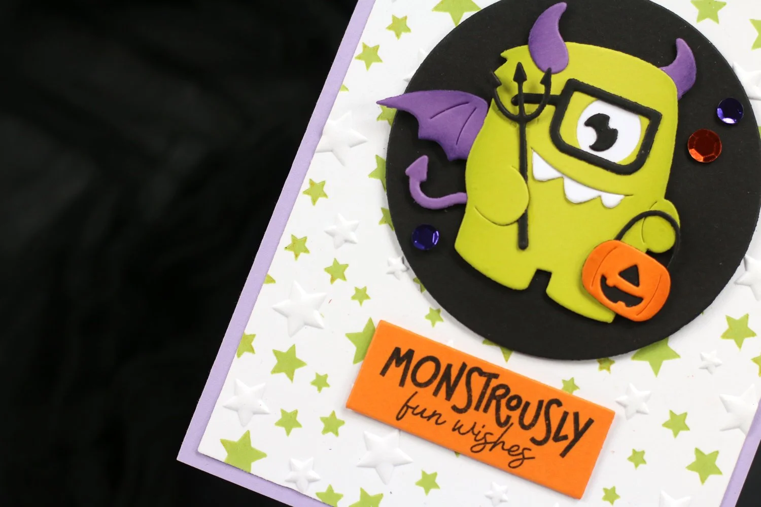 Take a look at the monstrously sweet card that I put together with the day nine die set: