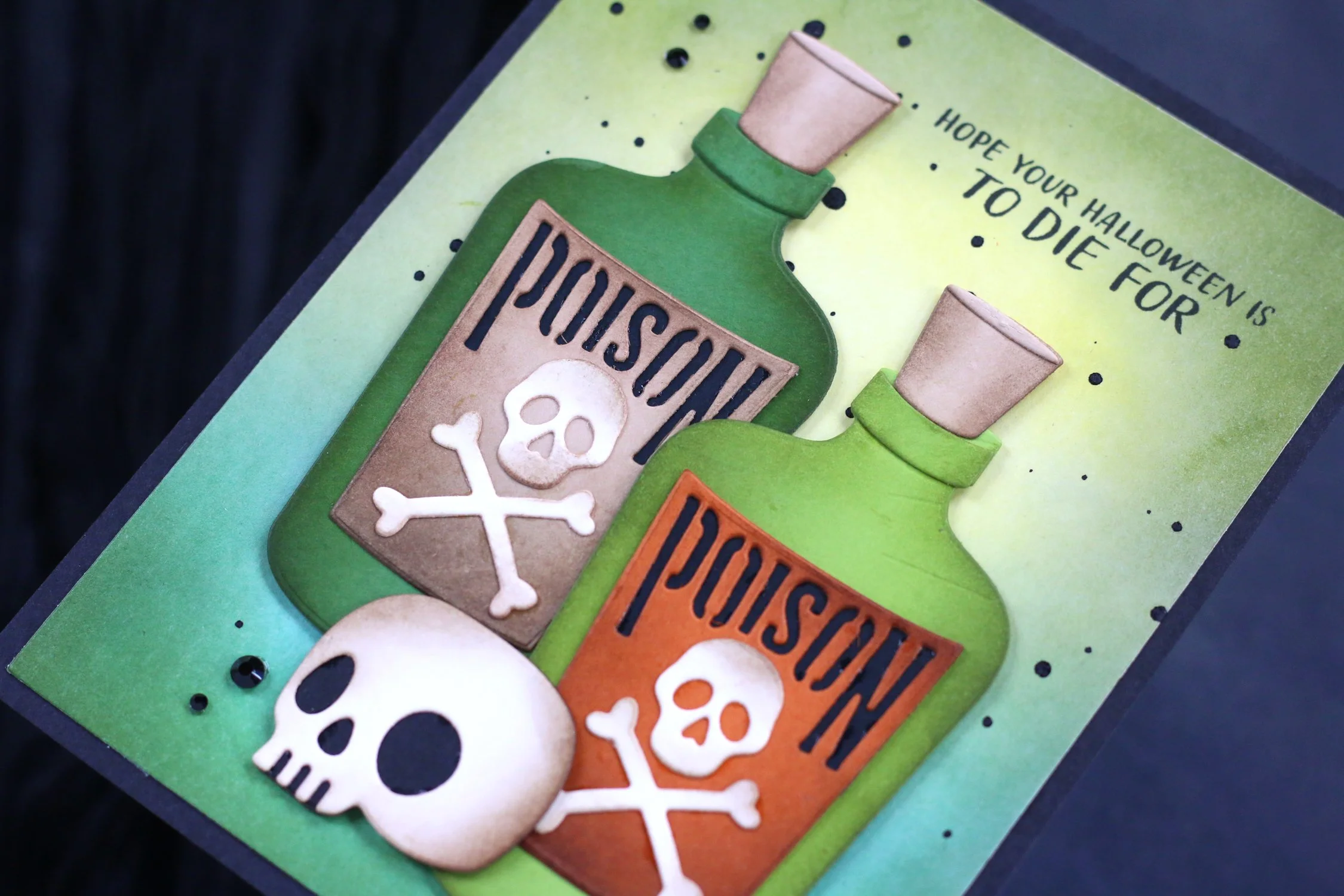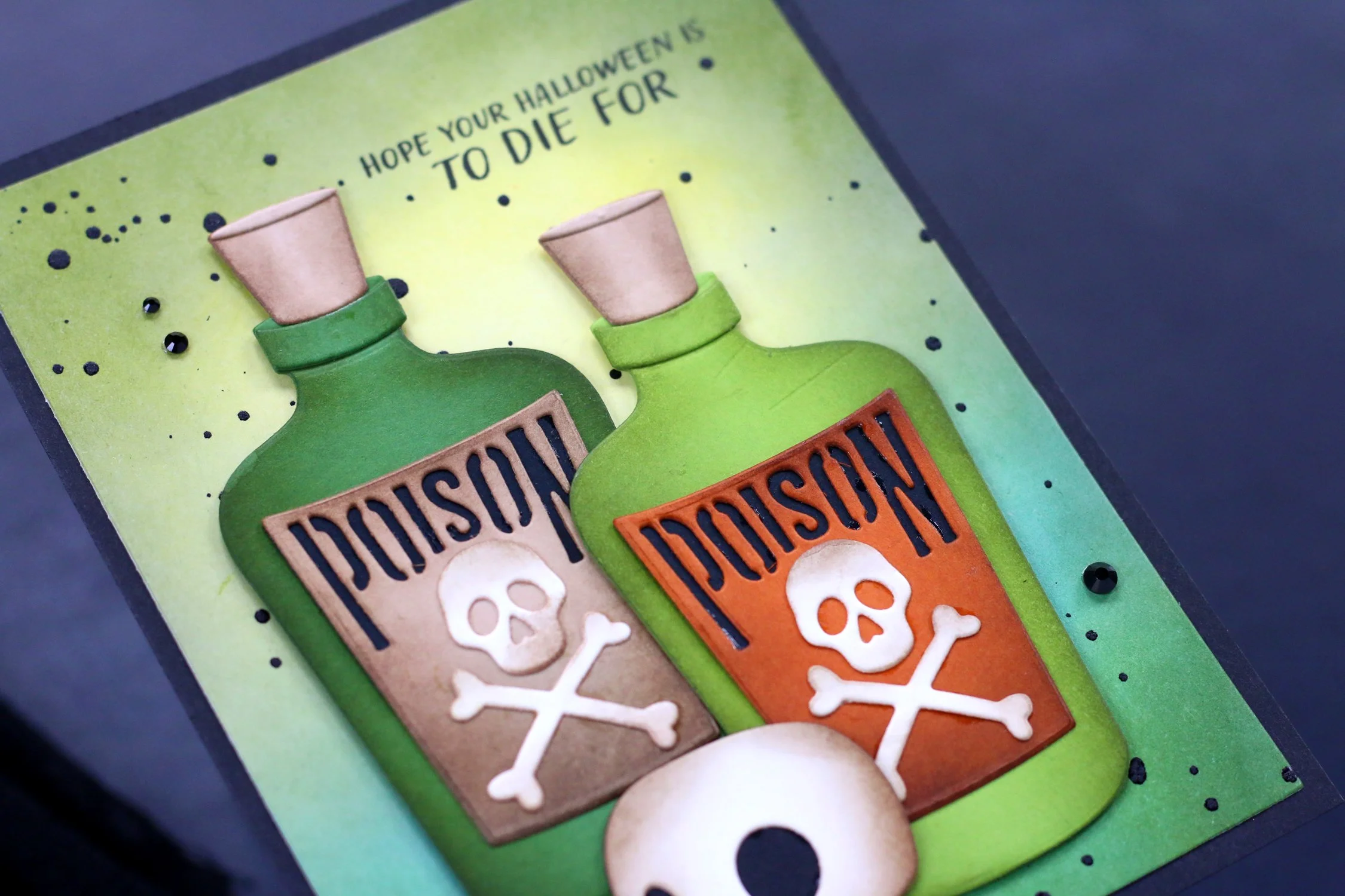The deep black splatters and essentials gems in Onyx on the background added the perfect touch to this deadly card!